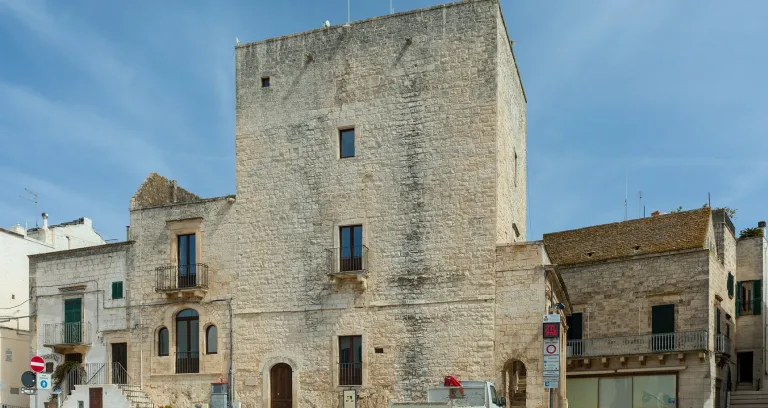 Foto di Benjamin Smith. La Torre civica Normanno Sveva è uno dei simboli di Cisternino. Si trova lungo via San Quirico, davanti ad una piazzetta da cui si ammira anche una splendida vista sui dintorni.